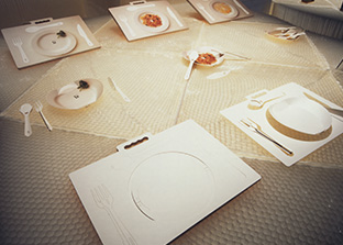 在三层大厅,由当下最受瞩目的年轻设计师活用“纸”所具有的本质(性质、特点),以8个主题展示了具有未来感的新型纸制品方案。